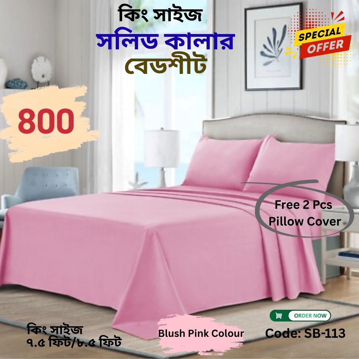 প্রতিটি বেডশিট এর সাথে ২ পিস বালিশের কভার ফ্রি পাবেন