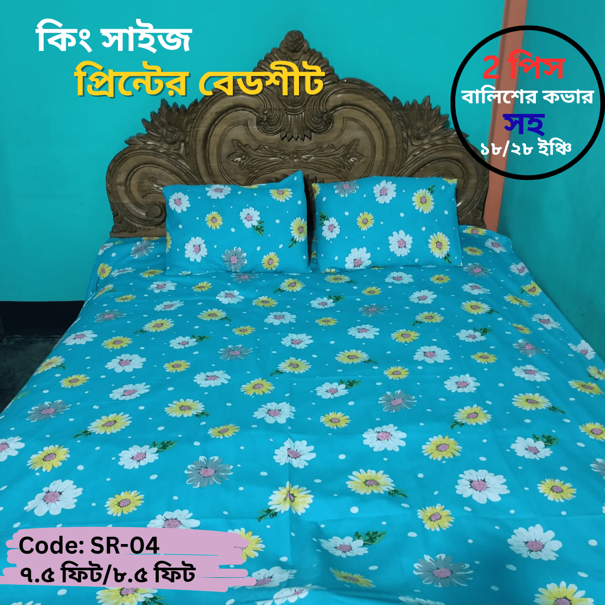 প্রতিটি বেডশিট ই কিং সাইজ ৭.৫ ফিট x ৮.৫ ফিট